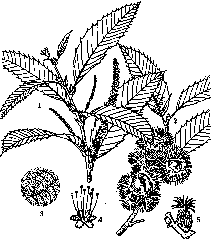 壳斗科beech family; Fagaceae又称山毛榉科。双子叶植物,常绿或落叶乔木,稀灌木。单叶,互生,全缘或分裂;托叶早落。花小,单性同株;雄花常密集为柔荑花序,稀为头状花序,花被4~7裂,雄蕊4~20枚,花丝细长,花粉具3沟或3孔沟;雌花1~3稀数朵生于总苞内,总苞由多数苞片组成,花被4~8裂,子房下位,2~6室,胚珠每室1~2枚。坚果1~3,稀5枚,局部或完全包裹于总苞内,果成熟时总苞木化增大为壳斗,壳斗外表的苞片呈鳞片、针刺或瘤状突起,螺旋或轮状排列,分离或紧贴。每果含1种子。种子无胚乳。染色体x=12。本科8属,900多种,分布温带、亚热带。中国7属,300多种,分布于黑龙江以南地区,为常绿或落叶阔叶林的重要组成树种。本科木材通称椆木,材质坚重,耐腐耐用,为建筑、家具、矿柱、枕木等优良用材;树皮及壳斗可提栲胶;种子淀粉可酿酒,作饲料或工业用。栓皮栎有发达的木栓层,为作软木、隔音、隔热的优质材料。许多树干可植养香菇、木耳。板栗果实为著名干果,营养丰富。 壳斗科双子叶植物。常绿或落叶乔木。单叶互生,羽状脉。花单性,雌雄同株,稀异株,风媒或虫媒。雄花序头状或葇荑花序下垂或直立。雌花序直立,雌花1~5生总苞内,总苞单生时木质化形成壳斗,每壳斗1~3(5)坚果。每果具一种子。种子无胚乳,子叶肉质。世界8属900多种,除非洲中南部外广布全球。中国产水青冈属、栗属、锥属、柯属、青冈属、栎属、棱栎属计7属,约320种。优良用材树种,栗属、锥属优良干果。其他属子实可作饲料、淀粉、酿酒,壳斗可提取栲胶。 |