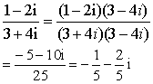| 释义 | 复数的除法fushu de chufa复数乘法的逆运算,即把满足 (c+di)(x+yi)=a+bi(c+di≠0) 的复数x+yi称作复数a+bi除以复数c+di所得的商,记作(a+bi)÷(c+di)或(a+bi)/(c+di).具体地将两个复数相除时,它的法则是应先把它们的商写成分式的形式,然后将分子和分母同时乘以分母的共轭复数,使分母实部化.并把结果化简便得到要求的商.具体过程是