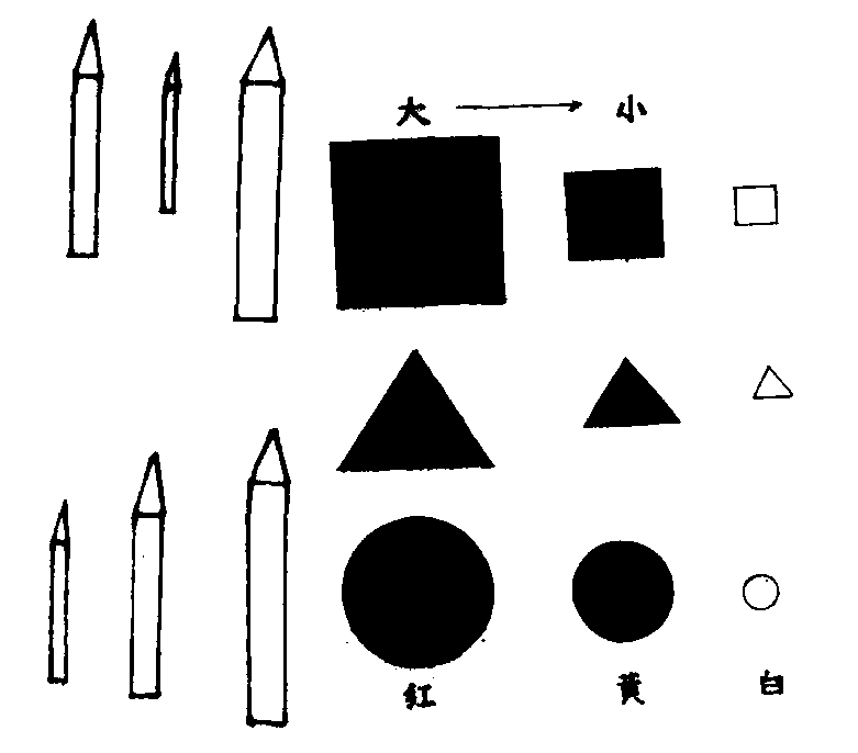 | 释义 | 复杂比较fuza bijiao有两种含义:一是指对两个或两组以上的物体的数或量进行的比较。它又称连续比较,即是对两个物体两两比较以后,说出被比较对象之间的关系。对物体进行排序,对相邻数关系的认识都属于复杂的比较。如:初教幼儿将3根长短不一的铅笔进行从短到长的排序,可先拿出其中的两根进行比较,看这两根谁短谁长,再将它们分别与剩下的一根比较,如果它比短的长,比长的短,就排在中间,得出这三根铅笔的长短关系,在此基础上排列起来。复杂比较的另外一种含义,是指将两个或两组以上的物体的几个特征进行比较,如按颜色和大小将物体分类或排序等。上图的分类就建立在复杂比较的基础上。复杂的比较是以简单比较为基础的。