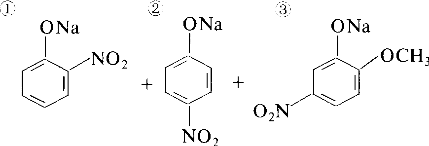 | 释义 | 复硝钠sodium ortho-nitrophenolate+sodium para-nitrophenolate+sodium 5-nitroguaiacolate由三种成分组成的复硝酚钠类植物生长调节剂。商品名爱多收、爱丰收、Atonik。化学结构式: