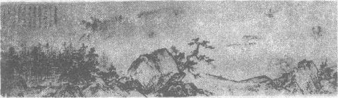 溪山清远图卷(局部)夏圭 夏圭生卒年不详南宋画家。字禹玉,钱塘(今杭州)人。宋宁宗赐金带,任画院待诏。早年攻人物,后以山水称著,取法李唐,水墨画山,笔法苍老,墨汁淋漓。秃笔加水后,用墨渲染作大斧劈皴(带水斧劈皴),水墨浑融,墨气袭人。构图变北宋全景山水重峦叠嶂为近景或局部特写,部局多偏半边,有“夏半边”之称。其画风简洁豪放,典雅清劲,与马远齐名;“马一角”画意深,“夏半边”情趣胜,形成“马夏”画派,属水墨苍劲派,为南宋山水画之代表。马、夏与李唐、刘松年并称南宋四大(画)家。有《松崖客话图》(藏台北故宫博物院)、《江山佳胜图》、《溪山清远图》(藏台北故宫博物院)、《西湖柳艇图》等传世。 |
