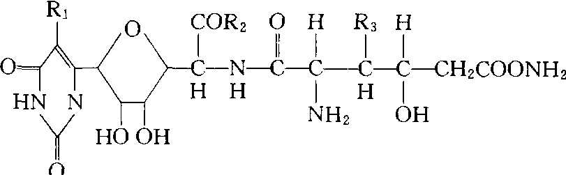 | 释义 | 多抗霉素polyoxin内吸性肽嘧啶核苷酸抗生素类杀菌剂。中国的多抗霉素主要成分是多抗霉素A(polyoxin A)和B(polyoxin B),由A至N14种不同的同系物组成的混合物,是金色链霉菌(Streptomyces aureo chromogenes)产生的代谢物。日本生产的类似产品称多氧霉素。它是可可链霉素阿苏变种(Streptomyces cacaoi var.asoensis)产生的代谢物。主要成分为多抗霉素B。商品名保利霉素、宝丽安(Polyxin B)。多抗霉素B的结构式见下页。