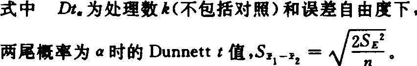 容量。LSD测验法实质上是t检验法。由于t检验法是用于检验两个随机样本平均数差异是否显著的方法。严格地说,LSD法只适用于比较一个阵列内相邻的平均数。或比较试验前已确定的彼此独立的处理平均数,例如,不同处理跟对照处理平均数的比较。 Dunnett最小差数法 一种专供测验若干个处理平均数i(i=1,2,…,k)与某一对照处理平均数0的差异显著性的多重比较方法,又称DLSD。当任一处理平均数i与0之差(i-0)的绝对值>DLSDα时,即为i与0在α水平上差异显著,DLSDα定义为
