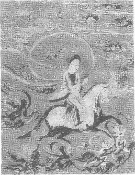 | 释义 | 夜半逾城图壁画隋。纵57厘米,横53厘米,甘肃省敦煌县莫高窟第278窟西壁龛南侧上壁画。夜半逾城是佛传故事中的一个著名情节。释迦牟尼看到世上的各种苦难,决意进山修道以求解脱。双亲为禁止他出走而将城门紧闭。释迦夜半离家得天神之助越城而走。图中穿黄色长袍的释迦骑在一匹白马上。作者虽未画出城墙,但骏马的腾跃和流动的飞云象征着逾墙。四只马蹄下各有一小天神在承托,以示天神相助。马匹精瘦俊健,美术工作者认为与汉代画象砖上的马匹十分相似。