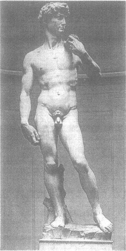 大卫像 《大卫像》 是米开朗基罗29岁时承接并以4年时间完成的高5.5米的巨型大理石雕像。大卫其人出自 《圣经·旧约》,是古以色列国一位牧羊少年,他无比英勇,一次在给哥哥送饭的途中遇到入侵的菲列士人,以巨石击杀巨人哥利亚,成为受人尊敬的传奇英雄,后来被拥戴为王。表现古代神话、圣经故事中的英雄人物,一向是文艺复兴以来艺术家所热衷的题材,多那太罗曾先后做过两件大卫雕像,流露出雕塑家对这位英雄的仰慕之情。与多那太罗的大卫不同,米开朗基罗将大卫塑成 一个体魄健壮、意志坚强、充满力与美、灵与肉和谐统 一的青年英雄形象。大卫裸着高大结实的身躯,仿佛像一座山峰,巍然屹立。他头部微微左侧,目视前方,眼里射出仇恨的目光; 左手紧紧握住甩石机,严阵以待进犯之敌。雕塑家成功地把握了临战前的瞬间动作、一触即发的紧张气氛,扣人心弦。 米开朗基罗生活的时代,正值意大利遭受法国、西班牙人的入侵,他以满腔的热忱投入了反抗外来侵略者的战斗。《大卫像》完成于1504年,寄托了雕塑家对祖国、人民命运的同情、关注,表达了必胜的信心。 大卫像意大利雕塑家米开朗基罗的作品。在基督教义里,大卫是作为英雄来记述的。作者为了使雕像富有象征性,把他塑成一个体魄健强、裸着身体的青年壮士形象。双目正凝视着前方,左手章着挂在肩上的投石器,右臂下垂坚定有力,象准备投入一场新的战斗,充分体现出一种顽强、坚定和正义的精神气质。原作现藏佛罗伦萨美术学院。 |