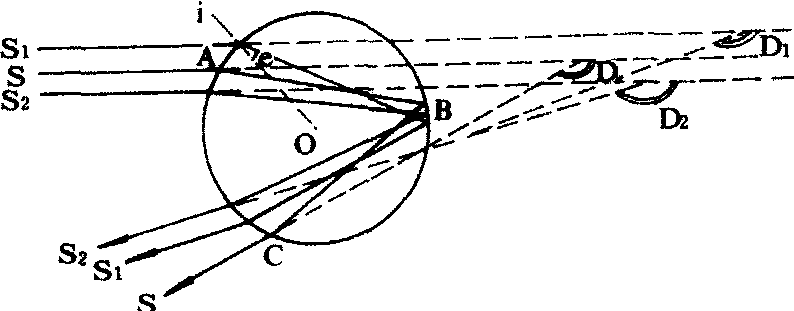 光线通过球形水滴时的折射和内反射