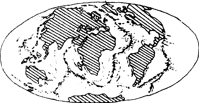 世界大洋中脊分布图 大洋中脊Dayang zhongji分布在大洋中心部位,地球上最长的海底山脉。大洋中脊贯穿于太平洋、大西洋和印度洋,全长80 000多公里。大洋中脊高度在2 000—4 000米,高出两侧洋盆底1 000多米,大洋中脊上的水深约3 000—4 000米,中脊峰顶露出水面,形成岛屿,如冰岛。大洋中脊宽度不等,最宽可达1 000—1 500公里以上。大洋中脊地形十分复杂,首先是一系列平行的纵向岭谷相间排列,然后又被横向断层切割错开成若干不连续的段落,切割横向错开的水平位移达1 000公里以上,在谷地与断层交汇处常形成一些很深的横向凹槽。大洋中脊轴部是两个板块交界地带,当地幔物质上涌时,中脊轴部受拉张而裂开形成纵向裂谷。在岩浆溢出的同时,新洋底在中脊中部不断形成,并逐渐向外扩展,因此中脊中线上年龄最新,愈向两侧年龄愈老。沿裂谷带是地震和岩浆活动的地区,也是热液矿床形成的地方。 大洋中脊贯穿大洋呈线状延伸的巨大海底山系。又称中央海岭、大洋洋脊,简称洋中脊。其总长度超过8.4万km,宽为1000~1500 km,一般高出周围洋底1~3 km,其面积占世界大洋总面积的33%。轴部是海底扩张中心,地震和火山活动频繁,地热流值高,两侧地磁异常条带对称分布。19世纪70年代发现了大西洋中脊,20世纪30年代末又相继发现了印度洋中脊和东太平洋海隆。研究它不仅对海洋地质科学理论有重大贡献,还在此处发现了海底热液矿床。 |