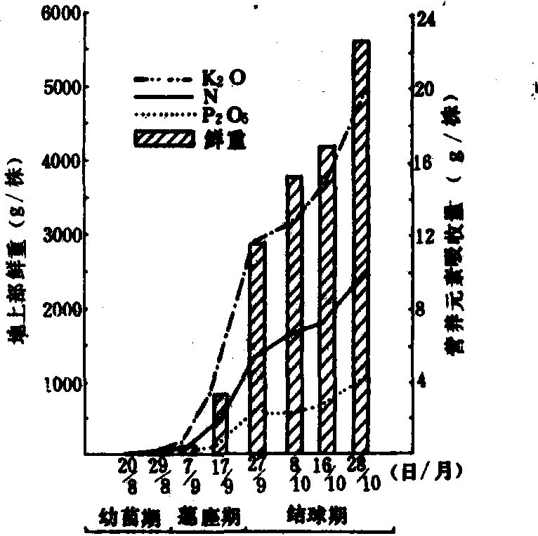 | P2O5 | K2O | N | 莲座期 | 包心初期 | 包心中期 |