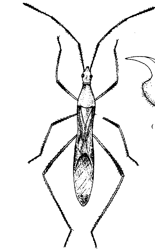 | 释义 | 大稻缘蝽large paddy bug刺吸水稻等作物的害虫。又名稻蛛缘蝽、稻穗缘蝽。学名Leptocorisa acuta (Thunberg)。半翅目,缘蝽科。分布于印度、孟加拉国、马来半岛。在中国的广东、广西、云南、台湾等省区比较普遍。主害水稻、小麦、玉米、甘蔗、豆类及多种禾本科杂草。在穗期局部严重。为害水稻的近似种还有中稻缘蝽及异稻缘蝽。成虫和若虫喜在灌浆至乳熟期的稻穗及穗颈上吸食,造成秕粒或白穗。1973年在广西、1974年在海南猖獗成灾。成虫体长16~19毫米,宽2.3~3.2毫米,草黄色,密布黑色小刻点,头长,侧叶长于中叶,向前直伸。前胸背板有密而显著的刻点,侧角较圆纯,不突出。前翅革质部前缘玉绿色,余为茶褐色,膜质部浓褐色。雄虫抱器基部宽,端部弯曲而渐尖削(见图)。