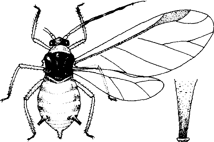 | 释义 | 大豆蚜soybean aphid大豆枝叶剌吸害虫,病毒病媒介体。学名Aphis glycines Matsumu-