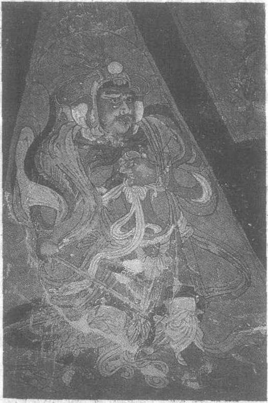| 释义 | 天王像壁画西夏。纵约1.5米。甘肃省肃南裕固族自治县文殊山石窟万佛洞东壁壁画。此天王为护法神四大金刚之一。浓眉大眼,面容粗犷,戴头盔,着战袍,右手持宝剑一柄,分腿而立。身材粗壮魁梧,表情庄严,凝视前方,是一个身经百战的武将形象。缠身的衣带飘舞,为他的英姿平添了几分潇洒。线条流畅自由,绘画技艺娴熟。