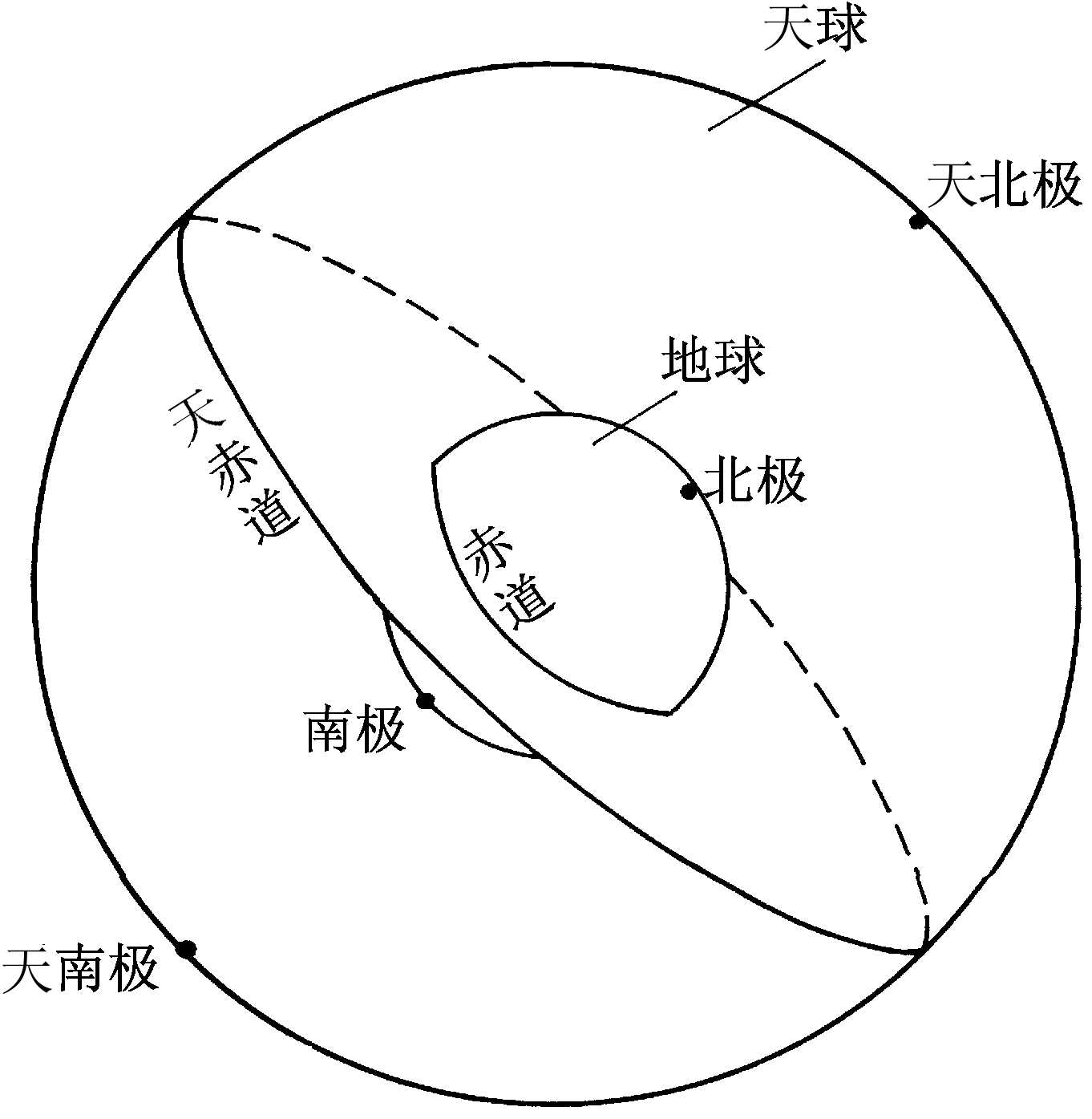 天球 天球研究天体的位置和运动而引进的一个假想圆球。根据所选取的天球中心不同,有日心天球、地心天球等。各个天体同地球上的观测者的距离都不相同。天体和观察者间的距离与观测者随地球在空间移动的距离相比要大得多,所以看上去天体似乎都离我们一样远,仿佛散布在以观测者为中心的一个圆球的球面上。实际上我们看到的是天体在这个巨大的圆球的球面上的投影位置,这个圆球就称为天球。观测者所能直接辨别的只是天体的方向。在球面上处理点和弧段的关系,比在空间处理视线方向间的角度要简便得多,在天文学的一些应用中,都用天体投影在天球上的点和点之间的大圆弧段来表示它们之间的位置关系。天球的半径是任意选定的,可以当作数学上的无穷大。为了定量地表示和研究天体投影在天球上的位置和运动,需要在天球一上建立参考坐标系,并主要应用球面三角学计算点位的关系。 |