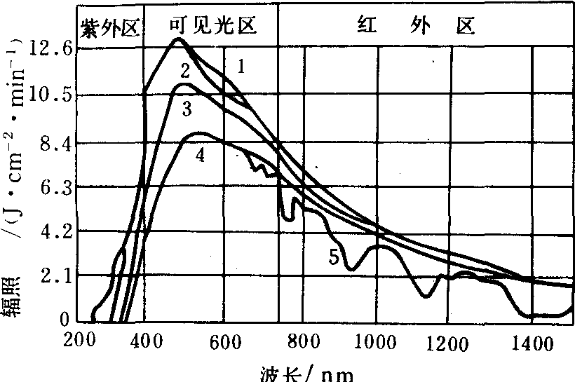 太阳反射辐射 指由地面反射的和地面至测点间空气向上散射的太阳辐射之和, 主要决定于太阳总辐射和地表反射率的大小, 对于同一下垫面, 大致具有与总辐射相同的变化规律。短波反射率简称反射率,指地面反射的太阳辐射与总辐射的比值。表示地表对总辐射的反射能力, 常用小数或百分数表示。其大小与太阳总辐射的光谱组成有关, 也决定于地表本身的物理性质(如颜色、湿度、粗糙度等)。太阳高度角的改变影响太阳光线入射角和光谱成分, 也影响地表反射率的大小。几种常见的下垫面反射率如表2所示。一般规律是颜色越深, 土壤湿度越大, 粗糙度越大,反射率就越小; 太阳高度角增大时, 反射率也越小。地表反射率的日变化是早晚大、中午小。在反射率的年变化中, 主要应考虑下垫面状况的变化, 对中、高纬度地区, 特别要注意积雪的影响。水体的反射率比较小,一般仅5%~10%。植物对太阳辐射具有选择反射能力。一般对可见光的反射率较小( 7%左右), 对近红外部分的太阳辐射, 反射率可达50%左右。作物在整个生育期中, 由于植被密度、叶片的颜色和含水量等的不断改变, 反射率也是变化的。 太阳净辐射 到达地面的总辐射减去地面反射辐射, 就是被地面吸收的太阳短波辐射,或太阳净辐射。这是地面吸收的供农作物利用并赖以进行辐射能量交换和热量交换的能源。(翁笃鸣) 农业意义 太阳辐射与农业生产关系密切。太阳辐射与热量、水分条件的不同组合, 形成不同类型的农业气候区, 影响动、植物地域分布, 以及农业结构、农业生产布局和发展方向。太阳辐射也是形成农田小气候的能量基础。它的热效应还直接影响动、植物体的热量平衡和各种生理活动的进行。 光能 太阳辐射是农业生态系统的能量源泉。陆地上高等植物群体, 在进行光合生产过程中, 通过摄取固定太阳辐射能, 建成自身所需要的物质; 由于植物体中, 物理和生理规律的支配, 有许多必要的能量支出, 分别用于反射、透射、蒸发、蒸腾、对空气的放热等; 叶绿素只能选择吸收波长为380~710纳米的量子, 还受到光合作用反应中心的“量子效率”及转换成经济产品的效率的限制。因此太阳辐射收入多寡和群体的转换效率的高低决定了植物和农作物群体的生产力。在适宜的水肥条件下, 植物对总辐射利用效率在生长盛期可望达到5%~6%。 光合作用 在植物群体光合生产中, 太阳辐射强度对有机物质积累和品质优劣有重要意义。当光强处于光补偿点和光饱和点之间, 光合作用速率随光强度增加而增加。喜光作物只有在直接辐射下才能正常生育,直接辐射是干物质积累的主要能量来源。漫射辐射虽然比直接辐射弱,但光合有效辐射多,被植物利用的有效性高。某些耐荫植物如茶叶、人参等, 在漫射辐射下产量高, 品质好。 光刺激 太阳辐射光效应的刺激作用, 为动、植物提供信息, 影响动、植物的生理、生态过程。光对植物体色素的形成、原生质的粘度及其流动、体内物质分配和输送等有重要作用。光刺激作用也影响气孔的开闭。某些植物的器官有显著的趋光性, 并可作自动调节运动。植物群体为适应光照强弱, 以茎叶密度的消长进行控制调节。不同波段的太阳辐射光谱对植物有不同的作用, 并能引起植物相应的反应。一年中某些季节白昼和黑夜的交替及其时间长度变化引起植物的光周期效应: 同一植物不同品种, 也有感光性强弱之分。家畜的生殖活动, 鱼类的回游,物候的变化,无不与日长变化和光照刺激有关。光照时间对多年生树木的生长、落叶、休眠均有一定作用。光刺激效应影响人类引种、驯化动、植物的进程, 也影响动、植物的生长、发育、繁殖速度, 以及植物的开花、结实和产量形成过程等。 太阳辐射太阳以电磁波形式向周围空间放射能量。能级大,放射波长短。参见“气象学”中的“太阳辐射”。 太阳辐射太阳向周围空间放射出的电磁波能量。射向地球的太阳辐射是地球大气运动的主要能量来源。通常把垂直于阳光的单位面积上,单位时间内所接收到的太阳辐射能量值,称为“太阳直接辐射”。太阳辐射穿过大气时被大气吸收、散射、反射而减弱。因此,到达地表面的直接太阳辐射强度因大气的物理状态和太阳光线通过大气路径的长短而有所不同。对多数地区来讲,一般在1.5卡/(厘米2·分)以下。中国青藏高原,海拔高度高,空气稀薄,其强度有时可达1.6—1.7卡/(厘米2·分)。 太阳辐射solar radiation又称日射。通常指太阳向宇宙空间放射的电磁波能量。射向地球的太阳辐射能量仅占太阳辐射总量的1/(21亿),但却是地球大气运动的主要能量来源。在地球大气上界太阳辐射的波谱范围极广,几乎包括了全部的电磁辐射波谱,但绝大部分能量集中在0.15~4μm之间。其中可见光区(0.4~0.76 μm)占总能量的50%,红外线区占43%,紫外线区占7%。太阳辐射光谱中具有最大能量的波长是在0.475 μm。在地球大气上界,当日地为平均距离时,垂直于太阳辐射方向的太阳辐射照度为1 367 W/m2。当太阳辐射进入大气层时,由于受到大气的吸收、散射和反射作用,穿过大气到达地面的太阳辐射能量被大大减弱,太阳光谱也会发生变化。 太阳辐射安徽太阳辐射年总量具有北多南少,平原丘陵多山地少的特点。皖南石台、黄山附近年辐射总量最少,不足460×107焦耳/米2左右;大别山西部和江南南部一带在47