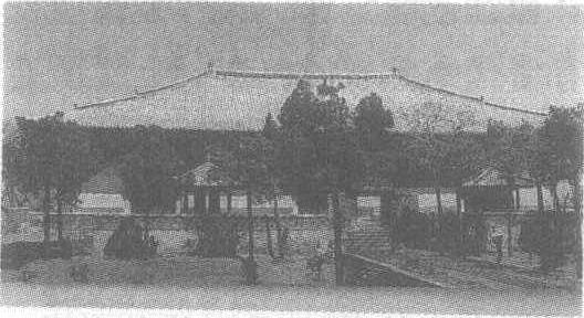 奉国寺 奉国寺中国古寺。位于辽宁省义县城内。原名咸熙寺。大殿内塑有7尊大佛,故俗称大佛寺或七佛寺。沿中轴线布置有山门、牌楼、无量殿和大雄殿。大雄殿建于辽开泰九年(1020),面阔9间,进深5间,东西长48.8 m,南北宽26.3 m,高21 m,是中国现存体量最大的辽代单层木构建筑。殿内佛坛上塑有7尊坐佛,当中毗婆尸佛高9.5 m,佛坛前左右两侧有金、元、明、清各朝碑刻11方。 |