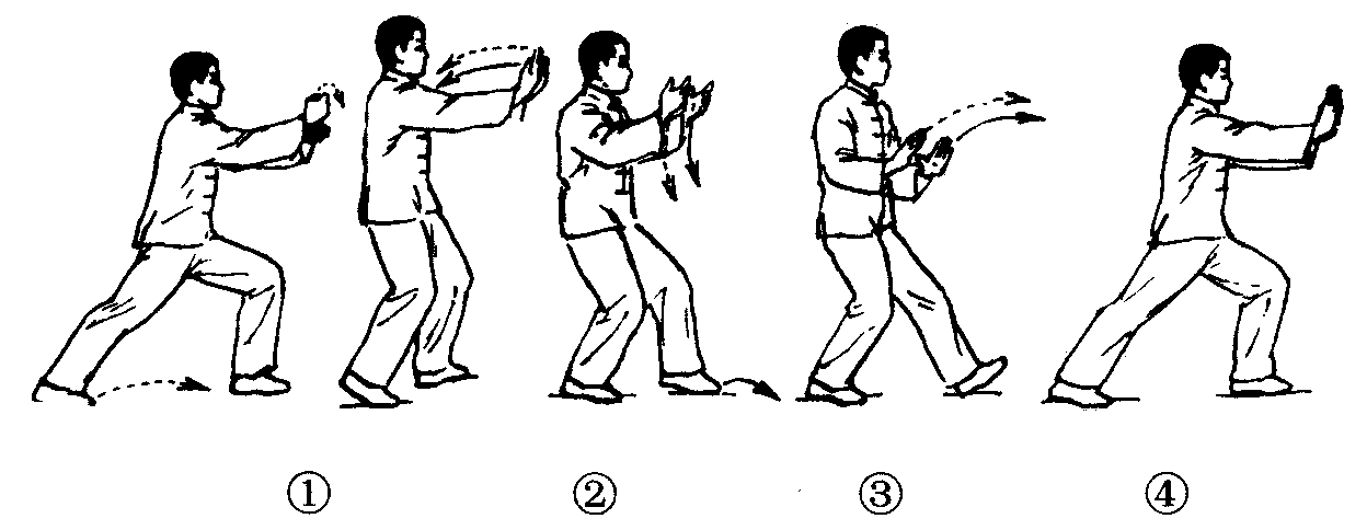 ❷二十四式太极拳中的如封似闭,只重心移动,而两脚不动,是简化过的动作。