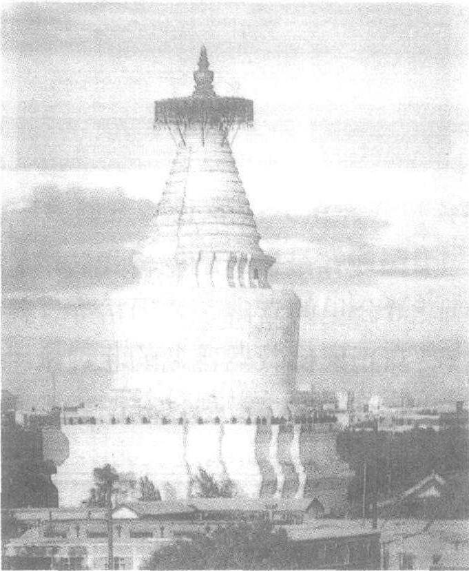 妙应寺白塔在阜成门内大街路北妙应寺内,妙应寺因其内有此白塔高耸,又称白塔寺。寺院和塔同建于1271年(元至元八年),由尼泊尔工匠阿尼哥主持建造,是当时兴建元大都的重要工程之 一。 妙应寺白塔元代佛塔。位于北京西城区妙应寺内,是我国现存最大的喇嘛塔。于元世主忽必烈至元八年(1271年)由尼泊尔工艺家阿尼哥主持建造。塔高为50.86m,以砖砌成,外涂白垩,故称白塔。下为 二层方形折角须弥基座,中间为一巨大的覆钵式塔身,承托圆锥形十三层相轮,上置直径9.7m的华盖,以原木作骨架,上覆铜板瓦。华盖周围悬以佛像佛字图案的铜制透雕流苏,上多有信男信女姓名及年号,刹顶是 一小型铜喇嘛塔,高5m,重达4吨。全塔造型简洁雄浑,塔身收分少,相轮造型粗壮,远望蔚为壮观。