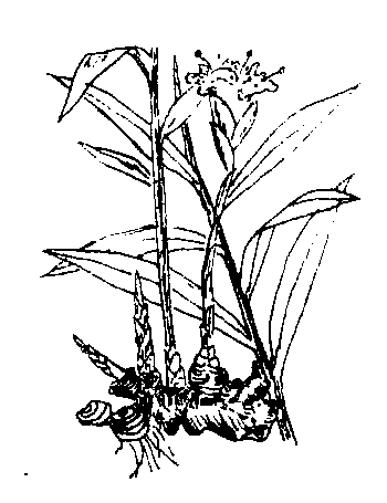 姜的生长周期 播种前晒种催芽,洗净种姜,晾晒2~3天,以提高种姜温度,减少水分,促进养分分解。精选姜种,置22~25℃黑暗温暖处培育壮芽,需20~25天。 冬前秋耕,立春细耙。中国南方多雨地区采用高畦栽培,北方开沟种植,沟内施足基肥,播前将已催芽的姜种掰成小块,每块70~100克为宜,其上留一个壮芽。每亩用种姜400~500公斤。先浇透水,将种姜排放沟中,后覆土约4~5厘米。 姜茎直立,叶片开展度小,较耐荫,适密植。行距52~55厘米、株距18~20厘米。姜不耐强光,光补偿点为500~800勒克斯,光饱和点为25000~30 000勒克斯,35 000勒克斯以上时光合作用逐渐减弱,20000~35000勒克斯为姜个体光合作用的适宜光强。因此姜生长前期需遮荫。南方于苗期多搭遮荫棚,8月下旬拆除; 也有与棚架作物间、套种进行遮荫的; 北方多插草遮荫,播种后在沟南侧插谷草或玉米秸,编成花篱,高约70~80厘米,8月上旬后拔除。姜幼苗期长,生长缓慢,须防草害,每亩可用0.75~1.0公斤除草醚与半潮湿细土充分混匀,撒在姜沟周围,保持土面湿润,杀草效果达80%以上。幼苗期需水量不大,暴雨后应及时排水,以防姜块腐烂。旺盛生长期需水量较多,保持土壤经常湿润。 姜植株鲜重增长动态与对氮、磷、钾的吸收动态相一致,幼苗期对三要素的吸收量约占全期总吸收量的6%,生长盛期约占94%,对氮、磷、钾吸收比率大致为4:1:4。姜所需养分,除由基肥供给外,还需追肥。苗高35厘米时,追施少量速效氮肥,称“催苗肥”;2~3个分枝时补施有机肥; 6~8个分枝时追施速效肥,促使姜块迅速膨大并防止后期缺肥而茎叶早衰。旺盛生长期,需结合追肥和浇水进行培土,变沟为垄,为根茎生长创造适宜条件。 种姜在发芽并长成新株后,不腐烂,不干瘪,可以采收食用。鲜姜多在霜前收获,也可在根茎旺盛生长时采收嫩姜。 贮藏加工 窖藏。贮藏前期,呼吸作用强,保持18℃左右温度,有利于伤口愈合和地上残茎脱落; 贮藏后期,保持窖温12~13℃,以控制呼吸减少消耗,窖内空气相对湿度保持在95%以上,防姜块失水干缩; 空气中CO2浓度约2%、O219%时,对姜块呼吸有抑制作用。 简易加工: ❶腌姜。每50公斤鲜姜加盐12.5公斤、水2.5公斤,一层鲜姜撒一层盐,每天倒缸一次,15天后封缸贮存。 ❷腌姜芽。选肥壮、白嫩的伏姜芽,每50公斤加盐12.5公斤,15天即可食用。 ❸甜酱姜芽。将50公斤腌姜芽浸水,控干后入缸卤酱,每50公斤姜芽用酱38.5公斤,经4~5天,再用甜面酱酱渍15天。此外,还可加工成姜糖、姜罐头等。 病虫害及防治 腐烂病(Pseudomonas solanacea-rum) 为细菌病。主要侵害叶及根茎部,发病时叶片由下至上变枯黄色,萎蔫反卷。茎基部和根茎呈黄褐色水渍状,维管束变褐,根茎腐烂,甚至地上部凋萎枯死。通常6月开始发病,8月至9月高温季节发病严重,且蔓延迅速。病原菌主要在根茎及土壤中越冬,田间传染媒介为灌溉水、肥料和地下害虫。可实行轮作换茬; 严格选用无病姜种; 灌溉时防止病田水流入无病田中; 禁用病株沤制堆肥等方法防治。 姜又称“生姜”,古代主要的调味类蔬菜之一。《论语·乡党》:“不撤姜食”;《吕氏春秋·本味》:“和之美者,阳朴之姜”,说明姜很早就成为主要的调味品。姜味辛辣,去腥解毒; 也可酱渍、糖渍,制姜干。 姜Jiang姜科。多年生草本,高约1米;根茎肥厚,块状。叶二列,叶片披针形至椭圆形。穗状花序球果状;花两性,两侧对称,花被片6,2轮,外轮萼片状,内轮花冠黄绿色,退化雄蕊和一花瓣形成3裂唇瓣,能育雄蕊1枚;子房下位。蒴果。我国中部、南部广为栽培。根状茎为调味料或供药用,为驱风、兴奋剂。