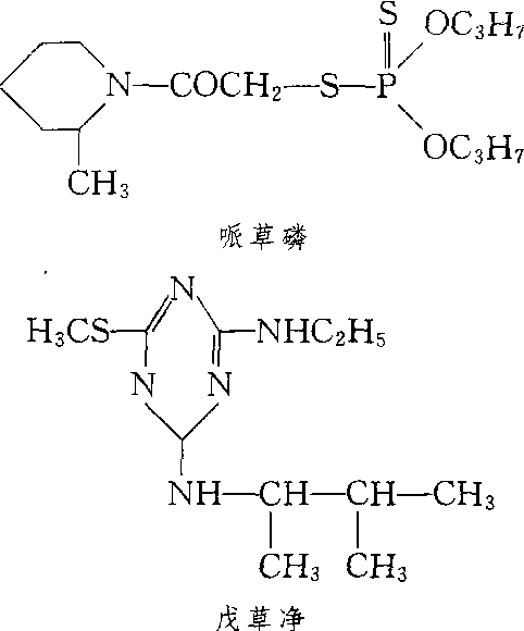 | 释义 | 威罗生piperophos and dimethametryn又称排草净、净哌磷混剂。稻田广谱选择性复配除草剂。由哌草磷和戊草净复配而成。哌草磷的化学名称为S-2-甲基哌啶基羰基甲基-O,O-二丙基二硫代磷酸酯,戊草净的化学名称为2-(1,2-二甲基丙胺基)-4-乙胺基-6-甲硫基-1,3,5-三氮苯。化学结构式分别如下。哌草磷原药黄至棕色液体,纯品密度1.1(20℃),蒸气压32×10-6 Pa,沸腾前分解,闪点62℃。几乎不溶于水,溶于大多数有机溶剂。戊草净原药为含有部分结晶的棕色胶黏液,纯品熔点65℃,20℃时蒸气压为186.7×10-6 Pa,密度1.098(20℃),沸点151 ~153℃(66.7 Pa),微溶于水,溶于大多数有机溶剂。威罗生中哌草磷与戊草净配比为4:1,适于水稻田使用。哌草磷可经根、子叶及胚芽进入植物体内,抑制核酸及蛋白质合成;戊草净通过根和叶吸收进入体内,破坏光合作用,使杂草饥饿死亡。可防除稻田稗草、片毛草、异型莎草、鸭舌草、节节草、萤蔺等多种一年生和多年生单、双子叶杂草。水稻移栽后,一年生杂草3叶期内、莎草出齐时用药。戊草净大鼠急性口服LD50为3 000 mg/kg,急性经皮LD50>2 150 mg/kg;哌草磷大鼠急性口服LD50为324 mg/kg,急性经皮LD50> 2 150mg/kg,急性吸入LC50>1.96 mg/L。50%威罗生乳油对大鼠急性口服LD50为940 mg/kg,急性经皮LD50>2 150 mg/kg,急性吸入LC50>1.83 mg/m3。