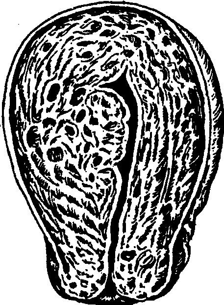 | 释义 | 子宫腺肌症子宫腺肌症(见图7.5-2)是子宫内膜侵入子宫肌层的良性病变,伴随子宫肌层弥漫性增生,过去曾称为“内在性子宫内膜异位症”,但侵入到肌壁的子宫内膜来自基底层,因此常不受孕激素的影响,并且其发病机制、临床表现和处理原则并不相同,所以,不作为内膜异位症的一种类型。子宫腺肌症多见于40岁以上经产妇,而内膜异位症多见于年轻不育妇女,腺肌症发病原因是由于基底层子宫内膜直接向子宫肌层扩散,不是由于种植或化生,腺肌症与子宫内膜异位症仅有的相似点是都存在异位的子宫内膜,有时两者可同时存在,约6—15%的腺肌症病例并发盆腔子宫内膜异位症。腺肌症病人多有继发痛经并进行性加重,经量增多或经期延长,子宫均匀性增大,呈球形较硬,有压痛。绝经后,随子宫的萎缩而退萎。孕激素治疗很少有反应,睾丸素有减轻痛经的作用,甲睾10mg/日。症状严重保守治疗无效,可行全子宫切除术,年轻未绝经者可以保留卵巢。