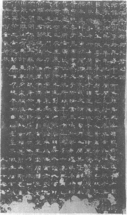 孔宙碑又称《泰山都尉孔宙碑》。东汉桓帝延熹七年(公元164年)刻立。碑圆首,一穿。高241厘米,宽132厘米,厚22厘米。穿两侧有篆书阴刻额题“汉泰山都尉孔君之碑”2行9字。碑文15行,每行28字,隶书,阴刻,记述孔宙的生平事迹。孔宙(103—163)字季将,孔子第十九代孙,曾官郎中、都昌长、元城令、泰山都尉。碑阴有篆额“门生故吏名”一行。额下隶刻三列,上二列各21行,下列20行,开列门生,故吏、弟子、门童等姓名籍贯。此碑书法甚精,风神逸宕,用笔旁出逶迤,极其势而去,如不欲还。是著名的汉碑之一,现存曲阜孔庙大成殿东庑。 |