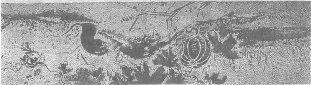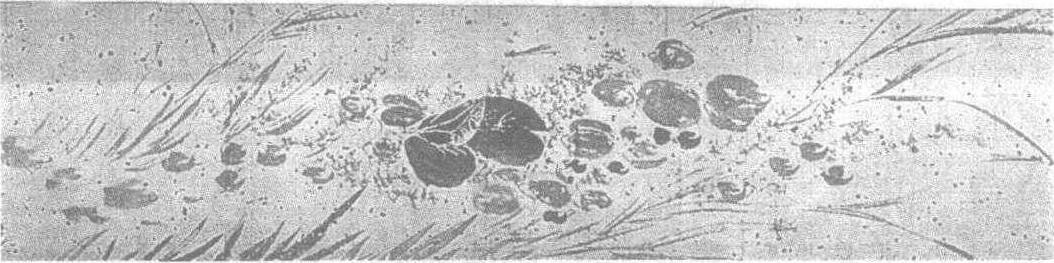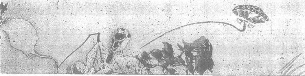 | 释义 | 孙隆《花鸟草虫图》纸本,洒金笺,设色。纵23.5厘米,横533厘米。形象用没骨法画松鼠、紫茄、莱菔、脊翎秋荷、青蛙睡莲五组形象,其间杂以各种野花野草、冬斯、豆娘、飞蝶等小昆虫。布置巧妙,手法灵活,直以色彩描绘,粗细结合,线面结合,色彩鲜艳而协调。一些各不相关的自然物,经艺术家巧妙设计安排,变为充满生气的美景。初看很像现代人画的水彩画。洒金笺的特殊质地,起到了活跃画面气氛的作用。 ![]() ![]() ![]() 孙隆《花鸟草虫图》 |
