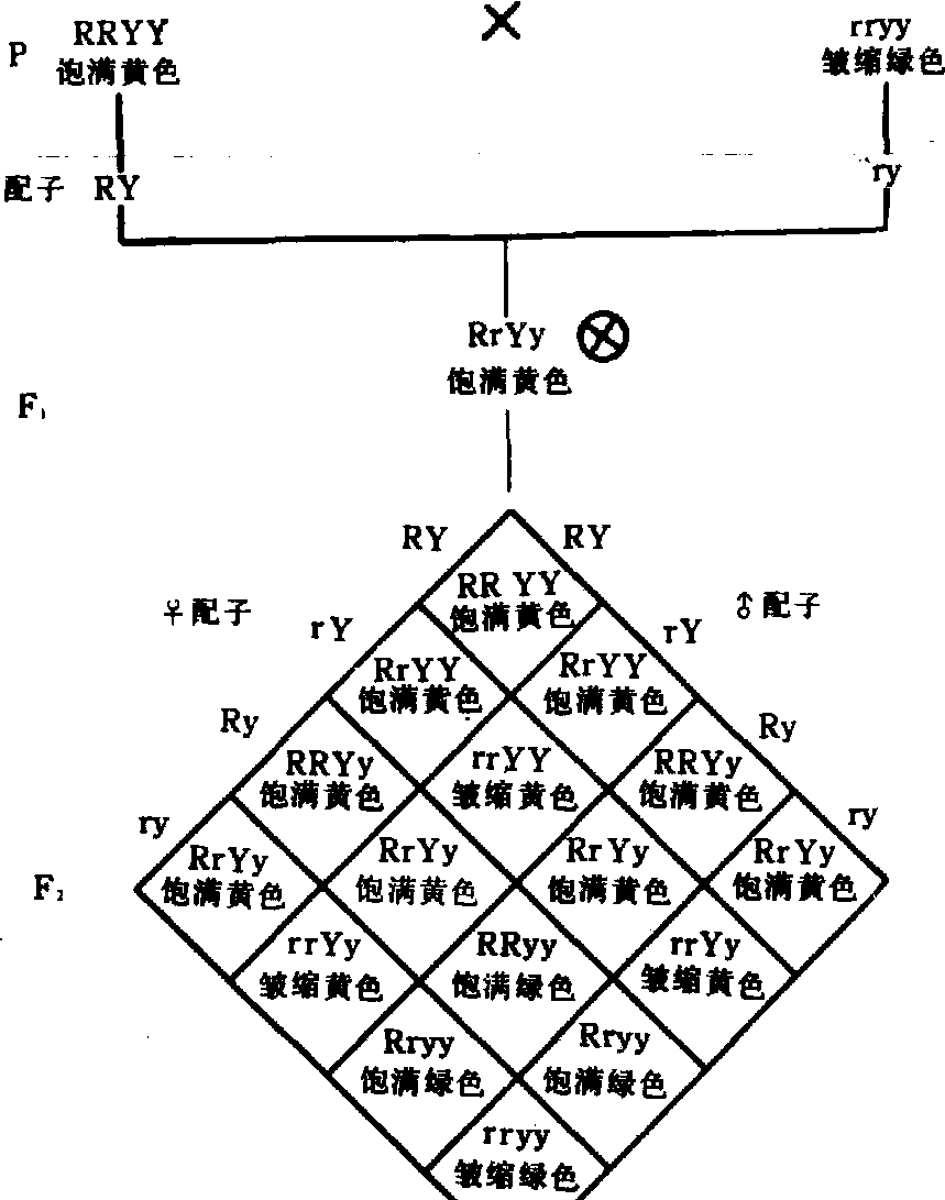 图 2 豌豆两对基因的遗传 Y.黄色; y.绿色; R.饱满; r.皱缩