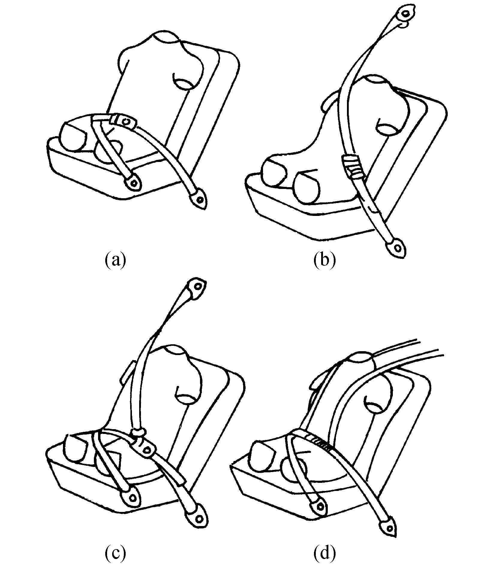 座椅安全带的种类(a) 二点式;(b) 肩带式;(c) 三点式;(d) 四点式