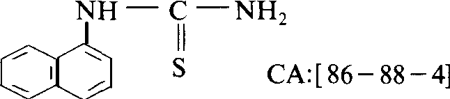 纯品白色结晶,熔点198℃。含量95%以上的工业品为蓝灰色粉末。受潮结块,但不失效。室温溶解度(克/升):水0.6,丙酮24.3,三甘醇86。在阳光和空气中稳定。安妥对褐家鼠急性口服LD50为7毫克/千克。不能经皮吸收,无刺激作用。狗服后呕吐。挪威大鼠最敏感,对其他鼠的毒力较低。鼠中毒过程较慢,中毒后72小时出现死亡高峰。因安妥中含有致癌物萘胺,一些国家已禁止使用。配成1~3%饵剂,沾在玉米棒芯上,堵塞鼠洞,鼠出洞时,为疏通道路,啃咬中毒死亡。用于防治成龄挪威大鼠效果好。 安妥antu急性选择性杀鼠剂。化学名称为1-萘基硫脲。化学结构式如下。纯品为无臭白色结晶,质轻,味苦,熔点198℃,难溶于水,微溶于丙酮、三甘醇,易溶于沸腾酒精。性质稳定,不易变质。主要损害鼠的呼吸系统,引起肺积水,呼吸减弱,6~72 h内因急性肺水肿而死亡。对褐家鼠、黄毛鼠有效,对其他鼠种毒力低。适口性好,初次使用效果颇佳。易产生耐药性,并可持续6个月。大鼠急性口服LD50为6~8 mg/kg,对狗、猫及其他哺乳动物毒性较小。