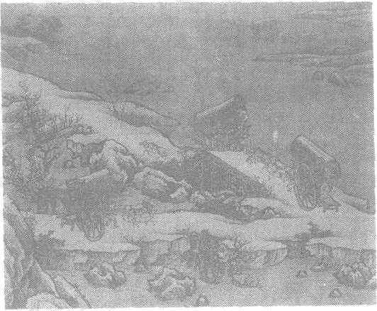 | 释义 | 宋人雪溪行旅图页南宋。朱□。绢本设色。纵24.8厘米,横26厘米。上海博物馆藏。此图是一幅出色的“盘车”小品,表现寒冬时节,一行运货车队顶风冒雪在水滩河堤问跋涉行进的情景。图中冈峦低伏,山树稀疏。溪流平展宽广,静静的河水在白雪的衬托下给人以寒涩、凝重的感受。雪雾迷漫,远处的坡岸已与山色融为一体,模糊难辨了。两段相互通联的河堤安卧在溪水之上。仿佛两条洁白的帛带。数辆牛车结队而行,穿出山谷,转过堤角,跨过小桥,为首的一辆正在远处涉水过河。车夫们有的执鞭驱赶,有的拽牛上桥,有的踞车闲坐,有的站起来扶着晃动的车厢,试图保持身体平衡。他们姿态不同,表情各异,细节刻画得十分生动、传神。此图结构严谨,布局讲究,景物的虚实、浓淡对照与车队的曲转、起伏变化都增强了画面的表现效果。其用笔出自郭熙画派而较粗放,勾描细腻,设色轻淡。