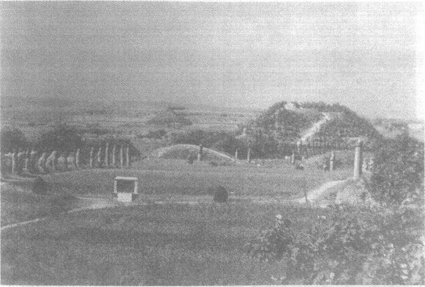 | 释义 | 宋陵位于河南省巩县芝田镇周围的丘陵地带,南依嵩山少室主峰,北临黄河。北宋王朝除徽、钦二帝外,宋太祖以下七个皇帝及被追尊为宣祖的太祖之父赵弘殷皆葬于此。整个陵区南北长约15公里,东西宽约10公里,按地势分成四个区:一区有宣祖永安陵、太祖永昌陵、太宗永熙陵;二区真宗永定陵;三区仁宗永昭陵、英宗永厚陵;四区神宗永裕陵、哲宗永泰陵。宋陵的地面建筑已毁于战火,但陵园结构仍保存完好。各陵布局、形制、面积大体相似,都由兆域、上宫、下宫组成。兆域占地120亩,四周植树木以为篱界,上宫、下宫、附葬的后陵及妃子、皇室子孙、当朝大臣如寇准、包拯等人的陪葬墓均在其内。上宫位于兆域中心,四面围以夯筑陵垣,每面正中各辟一门,四隅置角阙。覆斗形的夯土筑陵台位于上宫正中,陵台之下即为安放各帝灵柩的地宫,陵台前原有献殿、拜殿等建筑。陵垣的东、西、北三门外各置一对石蹲狮,南门内则置石雕宫人一对,门外列置石雕武士、奔狮各一对。南门外最南端是夹道而置的两重夯土台,分称鹊台、乳台。乳台至南门前的神道两侧,自南而北列置着望柱、象及驯象人、獬豸、角端、马及牵马人、虎、羊、客使、文武大臣等60件石雕像。从永厚陵的石人像上残留的颜色推测宋陵的石雕原曾着色。下宫在上宫的西北面,原设有奉祭死去帝王的殿堂和守陵人员使用的建筑。宋陵所在地势南高北低,其选址一反常例,为了符合当时“头枕嵩山脚踏黄河”的风水堪舆说,将作为陵墓中心的陵台置于地势最低处。宋陵的石刻保存较完整,包括后陵、陪葬陵前的石刻总数达千余件,其雕刻技法多样,造型豪放,极富表现力,堪称北宋雕刻艺术代表作。1982年国务院公布宋陵为第二批全国重点文物保护单位。 宋陵位于巩义市境内,分布在西村、芝田、孝义、回郭镇一带。宋陵恰在开封与洛阳之间,且南依嵩山,北临黄河,是名副其实的山水胜地。整个陵区南北长约15公里,东西宽约10公里,是中国现存较大皇帝陵墓之一。北宋的九个皇帝,除徽、钦二帝被金囚虏死于漠北以外,七个皇帝都葬于此。此外加上963年(北宋乾德元年),太祖赵匡胤的父亲赵宏殷的陵墓由汴京南迁至此,共构成“七帝八陵”。 170 宋陵分布在巩县的西村、芝田、孝义、回郭镇的附近。这里嵩山、邙山对峙,洛河贯流,是优美的山水胜地。安葬北宋七个皇帝,加上宋太祖之父的陵墓,共为七帝八陵。陵区南北长约15公里,东西宽约10公里,前后共营造160多年。各陵建筑布局大致相同,每陵由“兆域”、“上宫”、“下宫”三部分和石雕群组成。现永昭陵和永厚陵的陵区,已修建成宋陵公园。 宋陵北宋太祖赵匡胤等七代皇帝和太祖之父赵弘殷的陵墓,位于河南巩县,是我国最早的集中分布的帝陵,南宋赵构等六代皇帝的陵墓则集中在绍兴东5公里的宝山。北宋陵每个陵区植篱为界,形制相同,陵墓中有方锥形的陵台,下面是墓室,陵台为以墙围成方城,四角建阙,四面设神门,南面神门与陵台之间建有献殿,门外建有神道,由南往北依次在两旁排列鹊台、乳台和石象生,宋陵迷信堪舆之说,认为宋朝皇帝的赵姓为角音,应选用东南高、西北低的地形,所以宋陵都是前高后低的布局,是附合风水之说而产生的最突出的特点。