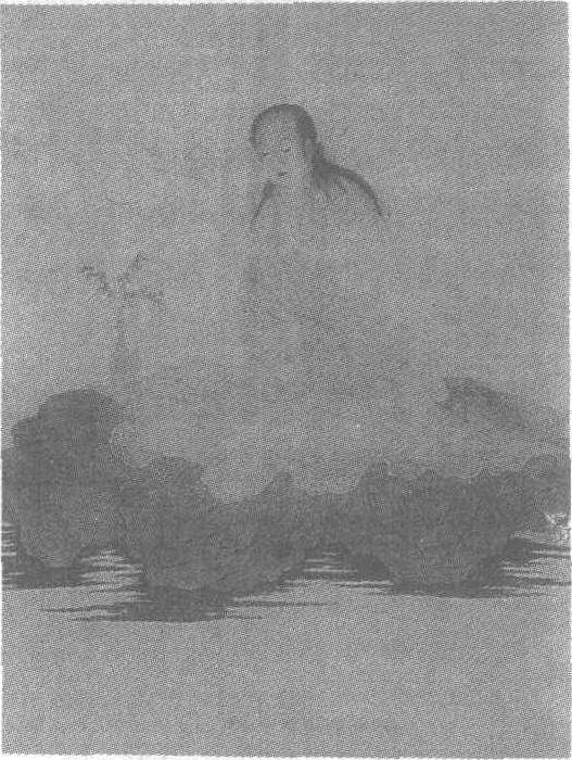 | 释义 | 丁云鹏观音图轴明万历壬午(公元1642年)。丁云鹏绘。纸本设色。纵97.2厘米,横33.1厘米。辽宁省博物馆藏。丁云鹏(公元1547—1628年),字南羽,号圣华居士,安徽休宁人。鉴赏名家詹景凤的入室弟子。工诗画。擅人物、佛像、仕女,得吴道子法,白描师李公麟,设色学钱选,以精工见长。早、中年用笔细秀,设色明艳古雅,晚年风格一变为粗厚苍劲,自成一家。他还兼工山水,取法文徵明,亦善花卉。传世作品较多,如《待朝图轴》、《大士像轴》、《释迦牟尼像轴》、《维摩说法图轴》等。此图以浅色工笔画观音身着乳白色大袍,袖手坐于形如莲花般的石青色台座上,微俯首沉思。其柔软的袍裾重重叠叠、波浪起伏地散覆台上,颇具美意。观音身旁的瓶中还插着几枝秀逸的细竹,为淡雅的画面增添了几分绿意。图的右下边有自题“万历壬午春暮善男子丁云鹏拜写”。下钤白文〈南羽〉,〈蕉露馆〉二方印。此幅构图简洁,笔致精细,人物形象生动,具李公麟白描笔意。