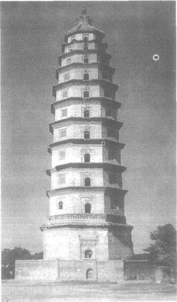 | 释义 | 定县开元寺塔又称料敌塔,是中国现存最高的砖塔,始建于宋真宗咸平四年(公元100年),历时55年峻工。塔高84m,平原上五十里以外都能看见它的身影,是八角形十一层楼阁式砖塔,采取宋代北方砖塔的典型形式。塔身下部四层在东、南、西、北四边开门,其他四面砖砌假窗,窗棂为砖雕几何纹,底层设腰檐平座,以上各层只有砖砌叠涩腰檐,自下而上塔径缩小,层高变矮,最上面二层八面均设门,起军事上的瞭望作用。塔内采用 “塔包塔” 的形式,内外塔之间形成八角形回廊,设砖砌蹬道,回廊内侧有佛龛及壁画。塔顶以砖砌覆钵,上设铁制象轮和青铜宝珠,高耸入天,塔基设在天然砂质粘土上,无任何加固,历千余年而无恙,为古代高层建筑所罕见。