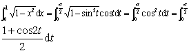 这个公式与不定积分的换元积分公式很类似. 二者的不同点在于,用换元法求不定积分,在求出原函数后,需将变量还原}而用这个公式计算定积分时,只须将积分的上、下限作相应的改变. 例 求 ![]() 解 设x=sint,有dx=costdt. 当0≤x≤1时,0≤t≤π/2.于是有 ![]() ![]() |