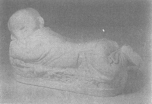 | 释义 | 定窑白釉童子形瓷枕北宋。长40厘米,宽14厘米,高18.3厘米。北京故宫博物院藏。这是北宋后期定窑的一件作品。童子双臂环抱,头侧枕于左臂之上,右手持一绣球,双脚交叉悬空,趴在一个长圆形、四周浮雕纹饰的床榻上。童子背部作枕面。童子脸庞如皓月,双目明亮,鼓鼻,小嘴,两耳肥大,头蓄孩儿发,身着长袍,布袍料上的花纹隐约可见。这个聪慧、天真有趣,逗人喜爱的孩子处于悠闲自得、轻松愉快之中,能给人以夏眠小憩的联想。童子枕在宋代景德镇、耀州窑系、定窑均有烧制,但在同类制品中,此件最佳。定窑见“定窑划花水波纹瓷海螺”条目。