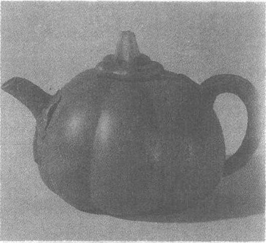 | 释义 | 宜兴紫砂瓜形壶明。通高11.2厘米,口径3厘米。江苏省南京博物院藏。江苏宜兴紫砂陶是久负盛名的陶器品种。宋元时期开始生产,明代是紫砂陶的兴旺成熟期,清代在前人的基础上更进一步。这种陶器的原料是宜兴特有的紫砂泥,精制后,精制成型,在1000℃以上的高温中烧成。明清两代紫砂艺人名家辈出,将紫砂器从日常用品引入陶器艺术品的领域。此壶做南瓜形,壶身分做十瓣瓜棱;壶盖作蒂形,佩青田石钮;一片卷曲的瓜叶为壶流;瓜藤的残梗为壶柄。瓜藤的丝纹和瓜叶的筋脉清晰可见。作品的构思独特,将生活中习见之物融汇于艺术创作,令人倍感亲切。壶壁刻诗:“仿得东陵式,盛来雪乳香”。款为“鸣远”,下钤<陈鸣远>阳文方印一。陈鸣远号鹤峰,又号石霞山人,清康熙时人,是著名的紫砂艺人,活跃于康熙、雍正两代。其独到之处在于雕塑装饰,擅长制壶、杯、瓶、盆,其款识书法具有晋唐风格。吴骞在《阳羡名陶录》中称鸣远为“一技之能,问世特出,自百余年来诸家传器甚少,故其名尤噪,足迹所至,文人学士争相延揽。”