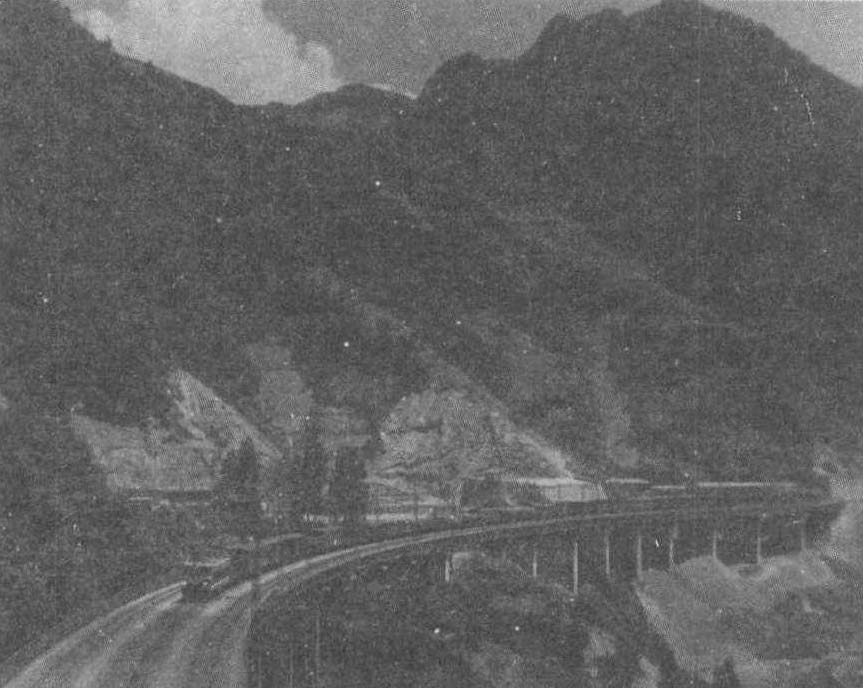宝成铁路通过秦岭山脉的一段线路 宝成铁路中国最早实现电气化的铁路干线,四川与全国铁路网联接的第一条铁路干线。北接陇海铁路,南联成渝铁路、成昆铁路,中部与阳 (阳平关) 安 (安康) 铁路衔接,是沟通西南、西北、中南的重要通道。该线北起陕西省宝鸡市,南抵四川省成都市,跨经陕西、甘肃、四川三省,全长668.198千米。1952年~1956年修建,1957年7月通车,1958年元月1日全线交付运营。大滩是陕西与四川两省分界点。从大滩经广元、江油、绵阳、德阳、广汉、新都至成都,为宝成铁路南段,共有车站43个,长367千米,占全线总长的55%。1959年~1980年相继开工建成的德天、成汶、广岳及广旺支线分别在德阳、青白江、广汉、广元车站与宝成铁路相连。该段1967年进行电气化改造,1975年7月全线交付运营,年运输能力比电化前提高1倍。现阳平关至成都段正在进行电气化复线改造,该段建成开通后,四川境内铁路运输紧张的状况将会得到一定的改善。 宝成铁路四川省通往外省区的第1条铁路,中国第1条电气化铁路。北起陇海铁路上的陕西省宝鸡,南到四川省省会成都,全长669km。1952年7月动工修建,1956年7月通车。其中宝鸡到秦岭段山险坡陡,高峰连绵,海拔在2000m以上,在直线距离25km的区间内,线路上升817m,采用3个马蹄形、1个立体8字形迂回线修筑,于是出现了重叠3层的线路。宝成铁路北端从宝鸡至凤州段,是中国第1条电气化铁路,全长91km,1958年6月动工,1960年6月建成,1961年8月15日正式交付运营。 宝成铁路自陕西省宝鸡到四川省成都。途经凤州、略阳、广元、江油、绵阳、德阳等城市,长673公里。紧连陕、甘、川三省。1957年建成,1975年完成电气化改造工程,是“天险蜀道”北向第一条通向外部的铁路。北接陇海——欧亚大陆桥,并接新建的宝中(卫)铁路,南连成昆、成渝等铁路,中有阳安线连接襄渝铁路,有支线通往都江堰、什邡、木瓜坪、绵竹、苍旺,并在成都——阳平关段建复线。沿线山势陡峻,大部穿行秦岭、大巴山、剑门山等山地,跨过嘉陵江和涪江,桥梁、隧道密集,工程浩大。是我国沟通西北和西南地区的交通干线。 宝成铁路北起陕西宝鸡市,纵贯陕西、甘肃、四川三省,南至四川成都市,全长668公里。陕西境内长237.6公里。是中国内地通往西南的第一条铁路,也是中国第一条电气化铁路。1958年6月开始电气化工程,1975年7月全线竣工。国家Ⅰ线干线,单线,采用韶山1型和法国进口6Y2电力机车,牵引定数2400吨,行车闭塞方式采用继电半自动,股道有效长秦岭以北为700米,秦岭以南为650米,年输送能力上行836万吨,下行1141万吨。货物运输以入四川的钢铁、石油、磷矿石、粮食和去陕南的煤炭为大宗。出川的有钢铁、建材、化肥、木材等。