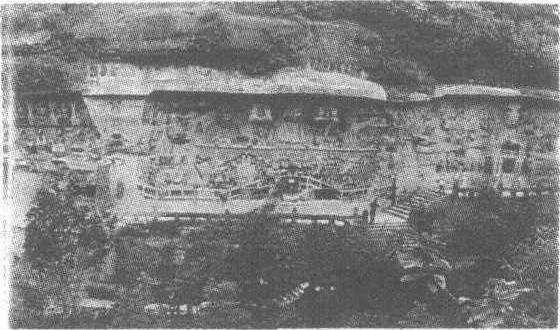 宝顶山摩崖造像位于重庆市大足县城东北15公里处的宝顶山,由宋代名僧赵智凤主持建造,从南宋淳熙六年开始,至淳祐九年结束,历时70余年,距今已有800多年历史。 宝顶山摩崖造像全国重点文物保护单位。位于县城东北宝顶山。开凿于南宋淳熙六年(1179),持续至淳祐九年(1249)。造像分布在大佛湾、小佛湾、倒塔坡、松林坡、广大山、龙潭等十余处,以大佛湾为中心。造像数以万计。创始人是自居密宗“六代祖师”的大足人赵智凤,为弘扬佛法而大规模摩崖造像。这是一次统一、连续的创作,把大足石刻艺术推向高峰。后世仅略有增补。大佛湾为一马蹄形山湾,造像崖面约3600平方米,南、北、东三面崖壁共有巨型雕像31幅,碑刻7通,题记17则。大佛湾多为密宗造像,是宋代石刻造像艺术代表作之一,主要有六道轮回、华严三圣、千手观音、释迦降生、释迦涅槃圣迹、九龙浴太子、孔雀明王经变、观无量寿佛经变、地狱变、牧牛道场等作品。不但富有故事性,而且饶有现实生活气息和特有的蜀乡情趣,还常刻有经义、偈语、颂词,犹如图文并茂的连环画。大佛湾南崖第8号窟龛有千手观音像,占壁面88平方米。观音趺坐莲台之上,庄重慈祥,有手1007只,每手俱现一眼,额前竖开一眼,身侧各手皆执法器,胸前有双手合十,余或双手结印,或双手抚膝,犹如巨大开屏孔雀,金光璀璨,奇妙灵动,无疑是雕刻艺术的瑰宝。大佛湾南崖的宝顶圆觉洞,以设计周密及雕刻精美著称。洞深12.13米,宽9.55米,高6.02米,洞顶开天窗采光,洞口有甬道。洞正壁刻主佛三尊,左右壁为十二圆觉菩萨,趺坐莲台,美丽庄严。壁间刻楼台亭阁、人物鸟兽、花草树木、幽泉怪石,画面真切可感,为大佛湾雕刻精华。洞的排水系统亦匠心独运。窟顶雨水由所雕托钵僧手中钵口龙头接纳,流入暗藏于僧人体内的排水道,再通过窟底水道排出洞外,洞内只闻水声,不见流水,达到了艺术与实用的巧妙结合。 宝顶山摩崖造像佛教雕刻,中国晚期石窟艺术的杰作。在大足县城东北15千米处。南宋淳熙六年至淳祐九年 (1179年~1249年) 间始建,创始人为两川地区传播密宗的赵智凤。明、清续有开凿。造像以大佛湾 (古名广大宝楼阁) 为中心,分布在周围的小佛湾 (古名大宝楼阁)、倒塔坡、龙头山、三元洞、大佛坡、仁功山、珠始山、无忧石、岩湾、龙潭、佛祖寺、佛祖岩、三块碑、高观音、广大山、松林坡、塔耳田等18处。大佛湾为一马蹄形山谷,岩面长约500米,高约15米~30米。造像刻于东、南、北三面的石壁上和石窟中,计有造像31龛窟、碑刻7通、题记17则,舍利宝塔2座。著名龛窟有: 号称中国之最、面积达88平方米的千手千眼观音,长达31米的释迦涅槃图(仅刻出上半身),反映四川密教的柳本尊十炼图,表现禅宗的牧牛图,充满世俗化内容的父母恩重经变、大方便佛报恩经变、地狱变相,高达7米的华严三圣像,构图繁密的观无量寿佛经变及石窟毗卢道场、圆觉道场等。几乎全为大型龛窟,气势宏伟,全国罕见。造像精美、又具地方特色。千手观音龛刻于大佛湾南崖东侧岩壁上,造像面积达88平方米,刻手1007只,纵横交错,金碧辉煌,为国内仅见。华严三圣像中为毗卢佛、左普贤、右文殊,三像均高达7米。其中文殊手托七级宝塔,塔高1.85米,重约500千克,历800年不坠,是将建筑力学运用于艺术创作的成功范例,足资借鉴。宝顶山上的圣寿寺是大足石刻的重要组成部分,宋代始建,现存建筑为明清时所建,有天王殿、玉皇殿、大雄宝殿、燃灯殿、维摩殿等。因多密宗供养像,有学者认为是密宗道场。1961年公布为第一批全国重点文物保护单位。 宝顶山摩崖造像在四川省大足县城东15公里宝顶山。南宋淳熙元年(1179年)名僧赵智凤前后70年在此营建佛教密宗道场。建寺院48重殿,山岩遍刻佛像,数以万计。佛徒有“上朝峨眉,下朝宝顶”之说。现存13处,以大佛湾、小佛湾最为集中。大佛湾造像规模最大,巨型雕刻有30余尊。华严三圣像高7米,手托千斤石塔,稳固如初;千手观音刻手1007只。巨佛长31米,身边还有10余尊雕像。南岩有宝顶圆觉洞,洞顶泉水经洞内流出洞外。小佛湾开凿时间早于大佛湾,有造像600余尊,中有石宝名毗庵,庵前有塔。宝顶山还有圣寿寺,殿宇巍峨,景象壮观。1961年公布为全国重点文物保护单位。 |