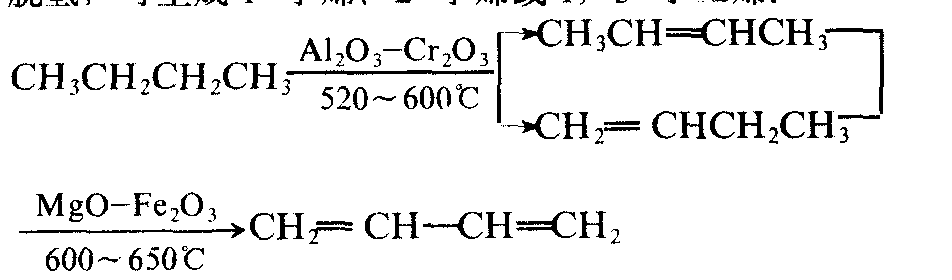 在工业上用分馏法将二者分开。正丁烷在硫酸或无水氢氟酸存在下异构化为异丁烷; 在催化剂存在下脱氢,可生成 1-丁烯、2-丁烯或1,3-丁二烯: