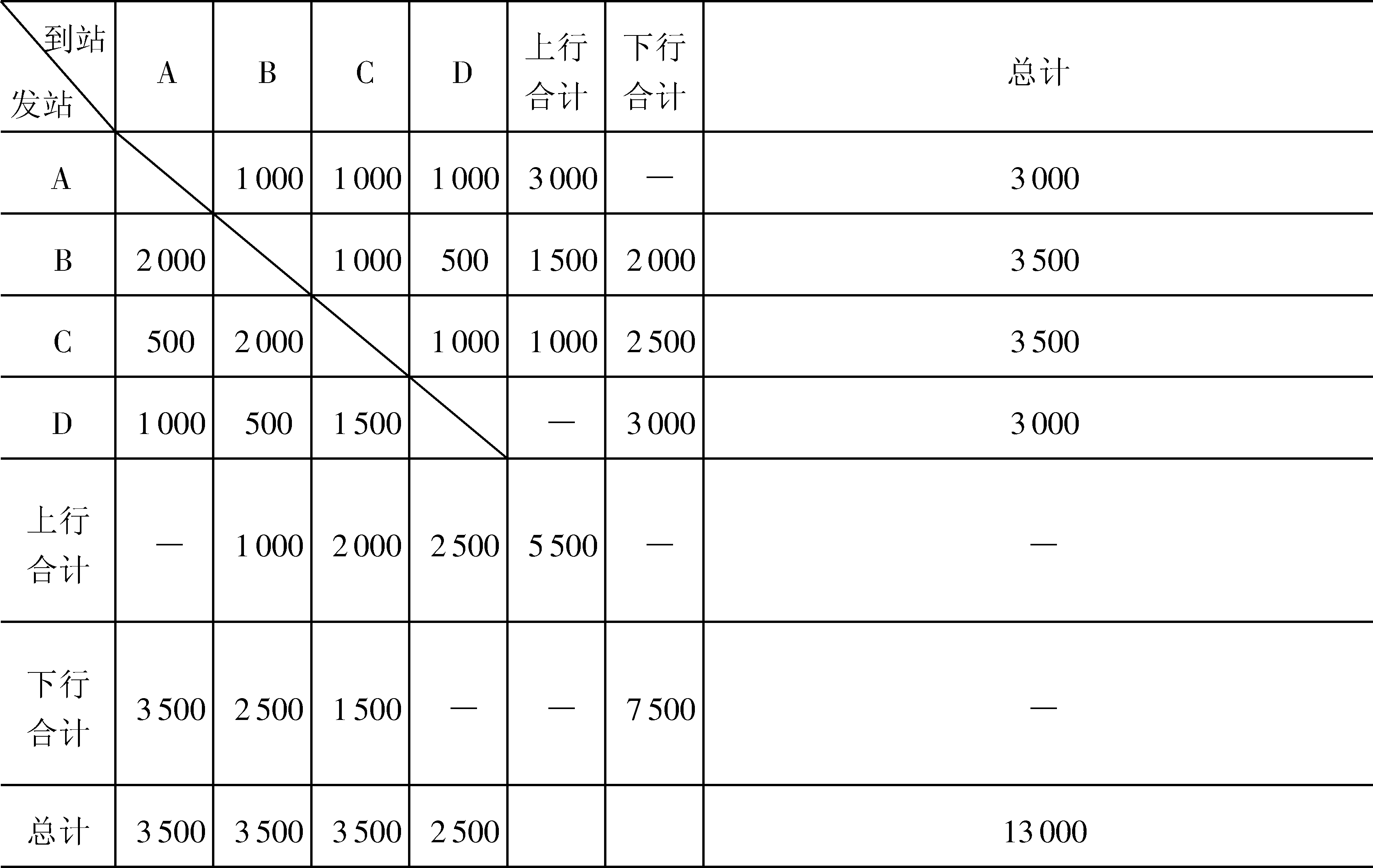 | 释义 | 客流斜线表OD sheet of passenger flow一定时期旅客在车站间流量的统计表。用以说明旅客的流向和流量。如下表所示。客流斜线表是了解客流密度、绘制客流密度示意图、确定旅客列车发站、到站、运行区段和应开行旅客列车对数的重要依据,也是新建、扩建客运站及其他运输设备的依据。 客流斜线表 单位:人