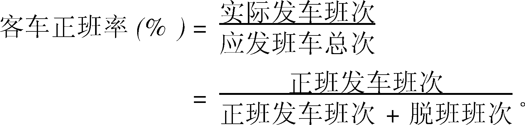 一定时期内客运班车实际发车班次与公告的客车班次时刻表应发班次之比。计算公式为:
