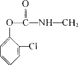 | 释义 | 害扑威hopcide又称CPMC,Etrofol。化学名称:2-氯苯基-N-甲基氨基甲酸酯。化学结构式如下。纯品白色结晶,略有酚味,熔点90~91℃。水中溶解度0.1%,易溶于丙酮甲醇等。口服毒性LD50值大鼠为648 mg/kg,小鼠118~190 mg/kg。经皮毒性LD50值大鼠>500 mg/kg。对鱼低毒,TLM鲤(48 h)为710 mg/L。杀虫速效,用于防治稻飞虱、稻叶蝉、蚜虫、粉虱等。