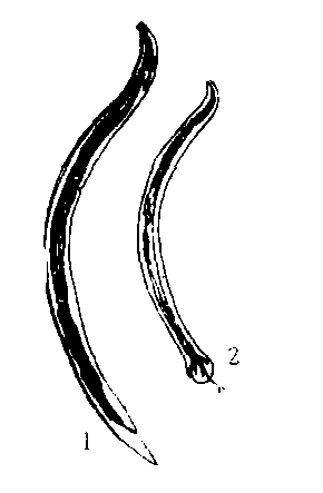 蛲虫 1 雌性 2 雄性 |