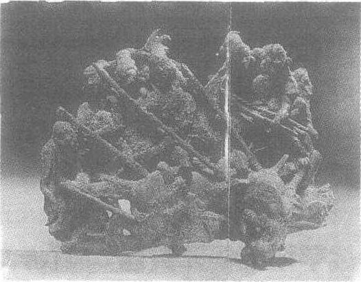 | 释义 | 七人猎虎铜扣饰战国晚——西汉初。高11.5厘米,宽13厘米。云南省晋宁石寨山出土。云南省博物馆藏。扣饰表现了一幅人兽搏斗的惊险场面:一只斑斓猛虎扑倒了一名猎手,猎手的头颈已被咬断。六位猎手、二只猎犬呼啸而上,长矛直捣虎身,猎犬嘶咬着虎背,生与死的搏斗在进行着。虎虽重创但不弃人而逃,猎手更不因为伤亡而吓退……虎的威猛与凶顽,滇族猎手的骁勇僄悍,在作者的手下表现得淋漓尽致。类似题材的作品,如:四人猎虎,二人猎鹿,三虎背牛,二虎噬猪等等在云南青铜器中多有表现,这说明在以农业为主的滇族社会生活中,狩猎经济仍占有着举足轻重的位置。