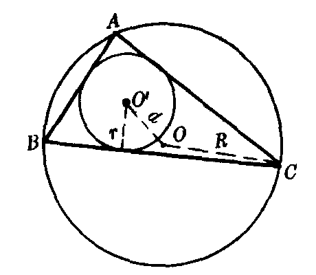 设R是三角形的外接圆半径,r是内切圆或旁切圆半径,d是两圆圆心距.则
