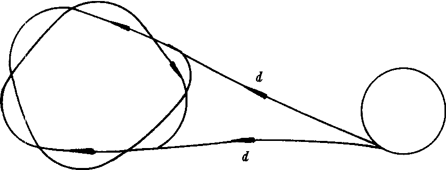 和能量E轰击b,产生c+d两个新粒子。c+d的总动量必须和a的动量相等,才能使动量守恒定律满足。因此,a的一部分动量用于维持c+d的动量,这时用于产生c+d这两个新粒子的的a b之间有效相互作用能只占a的入射能量的一小部分。而且,a的能量越高,有效作用能所占的比例越小。如果利用两束动量相等的粒子(例如正电子和负电子)迎头相撞,由于碰前在实验室中其总动量为零,那么产生的新粒子的总动量也是零。正电子和负电子的有效相互作用能量就要高得多。图1表示高能粒子的能量与有效相互作用能之间的关系。曲线1,2,3分别是同样能量的电子与正电子,电子与质子,质子与质子对撞的相应曲线。4、5、6分别是电子轰击静止的质子,质子轰击静止的质子以及电子轰击静止的电子的相应曲线。计算表明,两个216兆电子伏的质子束对撞的作用相当于10 000兆电子伏的单束机的效果。基于这种考虑,肯斯特(Kerst)和他的同事们以及奥奈勒(O’neill)于1956年提出了对撞机的设想。它是在高能同步加速器基础上发展起来的一种装置,和同步加速器很相似,它由环形磁铁系统、真空系统、高频加速系统、注入系统以及束流测量、校正、电源和控制系统组成。其主要作用是积累并加速相继由前级加速器注入的两束粒子流。到一定束流强度及一定能量时,使其相对碰撞。如果对撞的两种粒子电荷相反,静止质量相同(如电子与正电子,质子与反质子),则可以在同一个环形磁铁系统里反方向回旋对撞,如图2。如果对撞的两种粒子电荷相同,(如质子和质子),或者虽然电荷相反但质量不同(如质子和电子),则要在两个环形磁铁里才能反向回旋。这时,两个环可以有几个交叉点,在交叉点可能发生碰撞,如图3。粒子要先在另一台加速器里加速到一定能量,然后才注入到对撞机进行对撞。那台加速器叫注入器,可采用直线加速器或同步加速器。两束粒子对撞发生的概率远远小于单束机,为了提高对撞概率,要把注入器注入的粒子流积累起来,提高粒子流强度,还要加强对撞点附近的聚焦力。实现对撞的环形加速器又称为储存环。