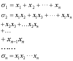 | 释义 | 对称方程duicheng fangcheng若数域F上含有x1,x2,…,xn的解析式f(x1,x2,…,xn),对于1,2,…,n的任一个排列i1,i2,…,in都有f(x1,x2,…,xn)≡f(xi1,xi2,…,xin),则称f(x1,x2,…,xn)为关于x1,x2,…,xn的对称式.