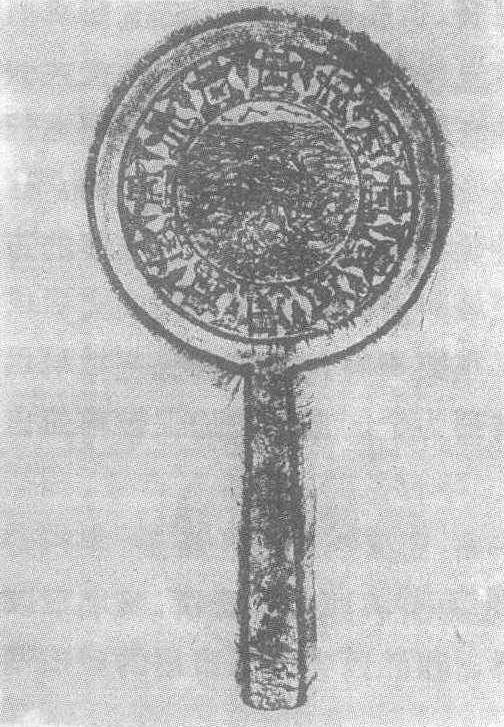 | 释义 | 七星十二宫铜镜南宋。直径13.1厘米,柄长11.4厘米。1986年江西省瑞昌县城南宋砖室墓出土。江西省瑞昌县博物馆藏。圆形铜镜带长柄。背面内区饰北斗七星,下方饰水波纹,水波中有一仙人悠闲自得地坐于古树之下,树枝上垂吊一葫芦。外区饰黄道十二宫,从镜柄部按逆时针方向依次为摩羯、宝瓶、双鱼、白羊、金牛、双子、巨蟹、狮子、室女、天秤、天蝎、人马十二宫,各宫之间点缀有祥云纹,边沿窄平。“黄道十二宫”是人们从地球上看太阳于一年内在恒星之间所走的路径,即地球公转轨道平面和天球相交的大圆。“北斗七星”是在北天排列成斗形的七颗亮星。通常被当作指示方向和识别星座的标志。