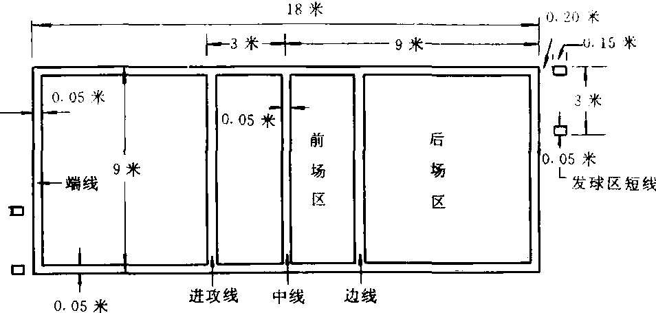 | 释义 | 小排球比赛场地和器材Xiaopaiqiu bisai changdihe qicai❶场地 我国小排球比赛至今未形成制度,因而没有法定场地,可在普通排球场地上进行比赛。普通排球场长18米称边线,宽9米称端线。将场地平分为两个对等半场的线为中线,在中线两侧3米处有两条与中线平行的直线,称进攻线。在两端线外20厘米处各有间隔为3米的两条长15厘米的短线,称发球区短线。发球区短线向外可无限延长。场上各线的宽度均为5厘米,线的宽度包括在场区之内。场地四周2米、上空7米之内不得有障碍物。为适合少年儿童的特点,北京府学胡同小学发起并承办的全国小学生“振兴中华杯”排球夏令部比赛缩小了普通比赛场地,规定其长16米,宽8米,并将进攻线距中线缩短至2.5米,发球区宽2.5米,其余各线不变。
