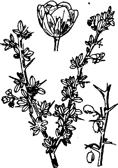 小檗 小檗落叶灌木,高约3米。枝灰黄色,具条棱。叶倒卵状椭圆形或卵形。总状花序展开或下垂,花黄色。浆果椭圆形,鲜红色。花期5—6月。乌鲁木齐有引种。 |