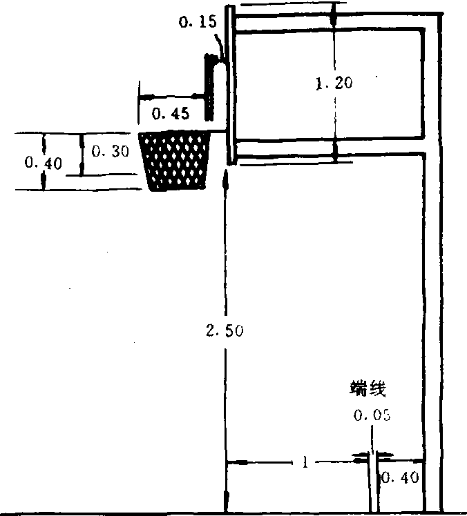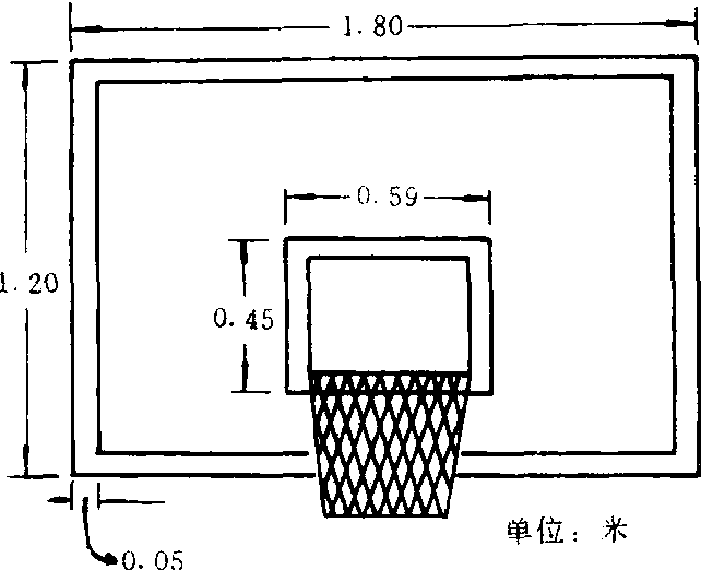 球篮 包括漆成橙色的篮圈和圈上挂的白色线网,篮圈粗2厘米,内径为45厘米,它与地面距离2.8米。 小篮球 周径是68—70厘米, 重量是480克-500克。